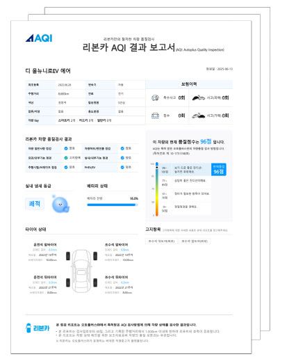 리본카는 소비자들이 중고차의 품질을 보다 투명하게 파악할 수 있도록 약 60페이지 분량의 ‘AQI(Autoplus Quality Inspection) 리포트’를 제공하고 있다. 이 리포트는 차량 시트 오염도, 타이어 마모 상태, 보험 이력, 엔진룸 청결도, 누유·누수 여부 등 외관만으로는 파악하기 어려운 항목들을 특허 기술로 진단해 시각화한 것이 특징이다.