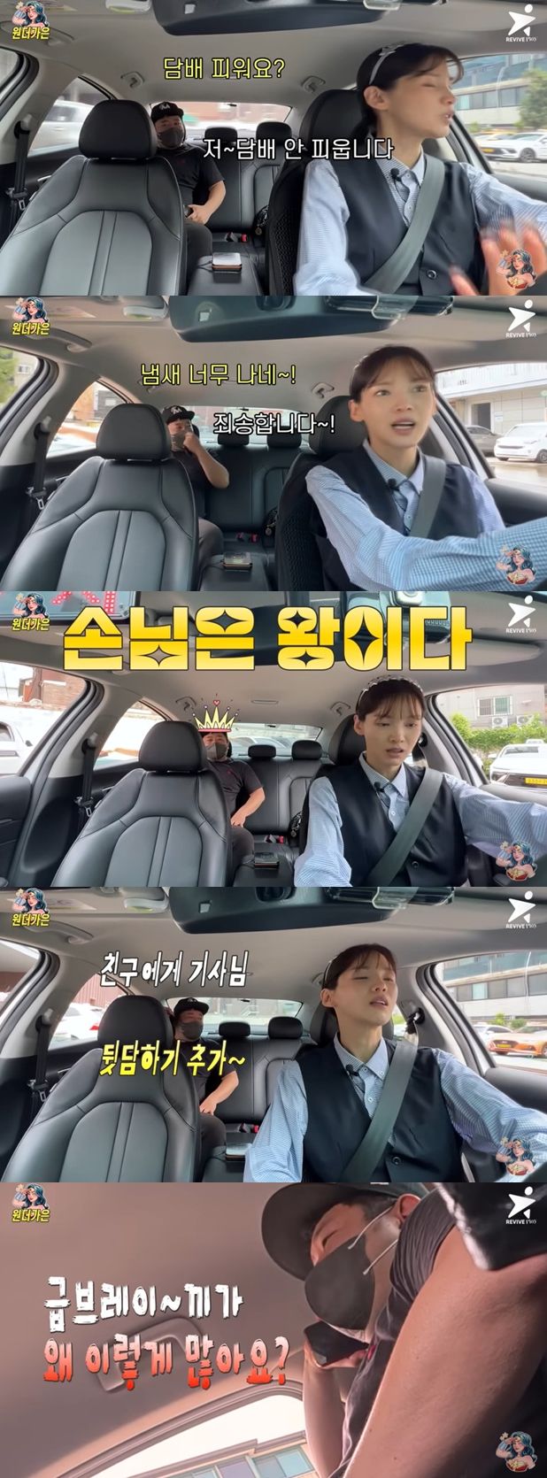 이어 손님은 지인에게 전화를 걸어 담배 냄새를 포함한 뒷담을 전했고, 또한 "운전 좀 살살 해라. 급브레이크가 왜 이렇게 많냐. 부드럽게 해라"고 지적했다.