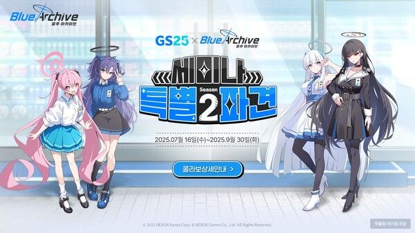 GS25 편의점과 함께하는 콜라보 이벤트의 세부 계획도 공개됐다. ‘블루 아카이브’와 GS25는 오는 16일부터 9월 30일까지 다양한 방식으로 콜라보 이벤트를 펼친다는 계획이다.