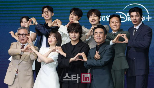 가수 겸 배우 정윤호(유노윤호)가 8일 오전 서울 영등포구 콘래드 서울 호텔에서 진행한 디즈니+ 오리지널 시리즈 ‘파인: 촌뜨기들’ 제작발표회에서 관전 포인트를 전했다.