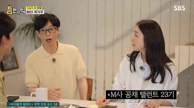 이를 듣던 유재석이 “저도 공채다. 원빈 씨가 공채 아니냐?”라고 아는 척을 하자, 최지우는 “아니다. 정보가 조금 얕다”라고 지적해 웃음을 자아냈다.