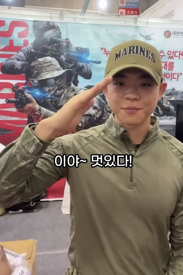 그리는 카메라를 향해 "병 1308기입니다. 필승"이라고 외치며 해병대의 늠름함을 보여주기도 했다.