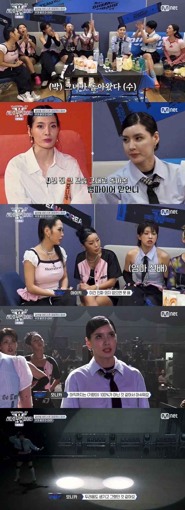 이날 허니제이이는 "오늘이 무슨 날이냐면 모니카 언니가 복귀한 날이다. '스우파 1' 때 모습 그대로 왔다"라며 모니카의 복귀를 알렸다.