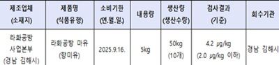 회수 대상은 소비기한이 ‘2025.9.16.까지’로 표시된 제품이다.