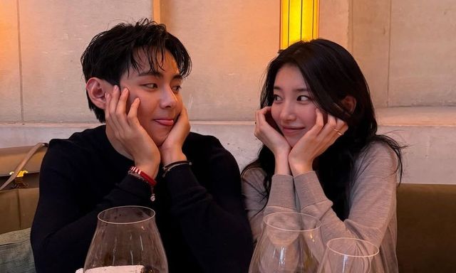 다른 사진 속에는 수지와 뷔 투샷이 담겼다. 수지와 뷔는 장난스러운 표정으로 서로를 응시하며 팬들의 환호성을 불렀다.