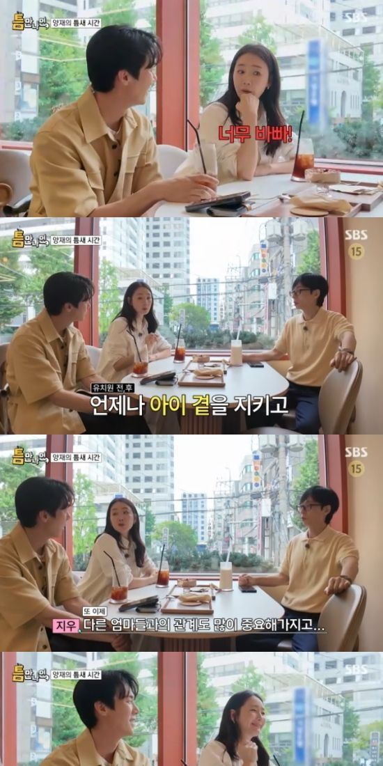 유연석은 최지우에게 "육아 말고 개인 시간에는 뭐하냐"면서 궁금해했고, 최지우는 "특별히 하는 것은 없다. 집에서도 너무 바쁘다. 등원하면 바로 하원 시간이 된다. 그리고 하원하면 아이와 무조건 같이 있는다"고 했다.