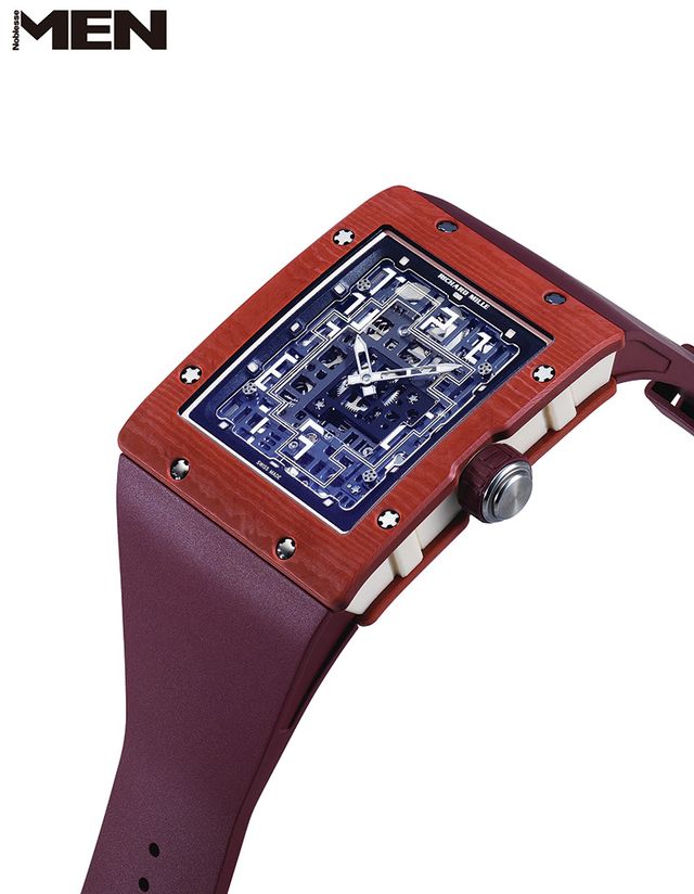 무브먼트를 온전히 드러내는 스켈레톤 디자인은 자신감의 표명이다. 부품의 유기적 움직임과 세밀한 세공 등 기술과 미학을 숨김없이 드러내기 때문이다. RM 16-02는 사각 케이스와 균형을 이루도록 수직 구조의 스켈레톤 무브먼트를 적용했다. 이 모델을 위해 제작한 칼리버 CRMA9는 내부가 훤히 보이는 오픈워크 구조로 역동적 디자인을 강조한다. 케이스 크기는 36 × 45.65mm로 기존 모델보다 약 10% 작아졌고, 두께는 엑스트라 플랫답게 9.5mm로 가벼우면서 손목에 편안하게 밀착된다. 더불어 리차드 밀은 5등급 티타늄과 테라코타 쿼츠 TPTⓇ를 적용해 소재에 대한 자신을 과감하게 드러내며 완성도를 한층 높였다.