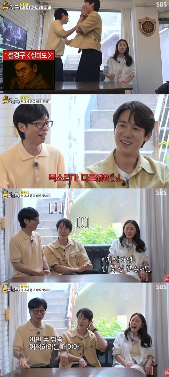 또 최지우는 "나는 (설경구라고) 하려고 했는데, 아까 나온 거라 그래가지고"라며 유연석의 팔을 치며 어쩔 줄 몰라 했다. 유재석은 "지우야. 오늘 왜 그러는 거야"라며 계속 틀리는 최지우에게 답답한 마음을 드러냈다.