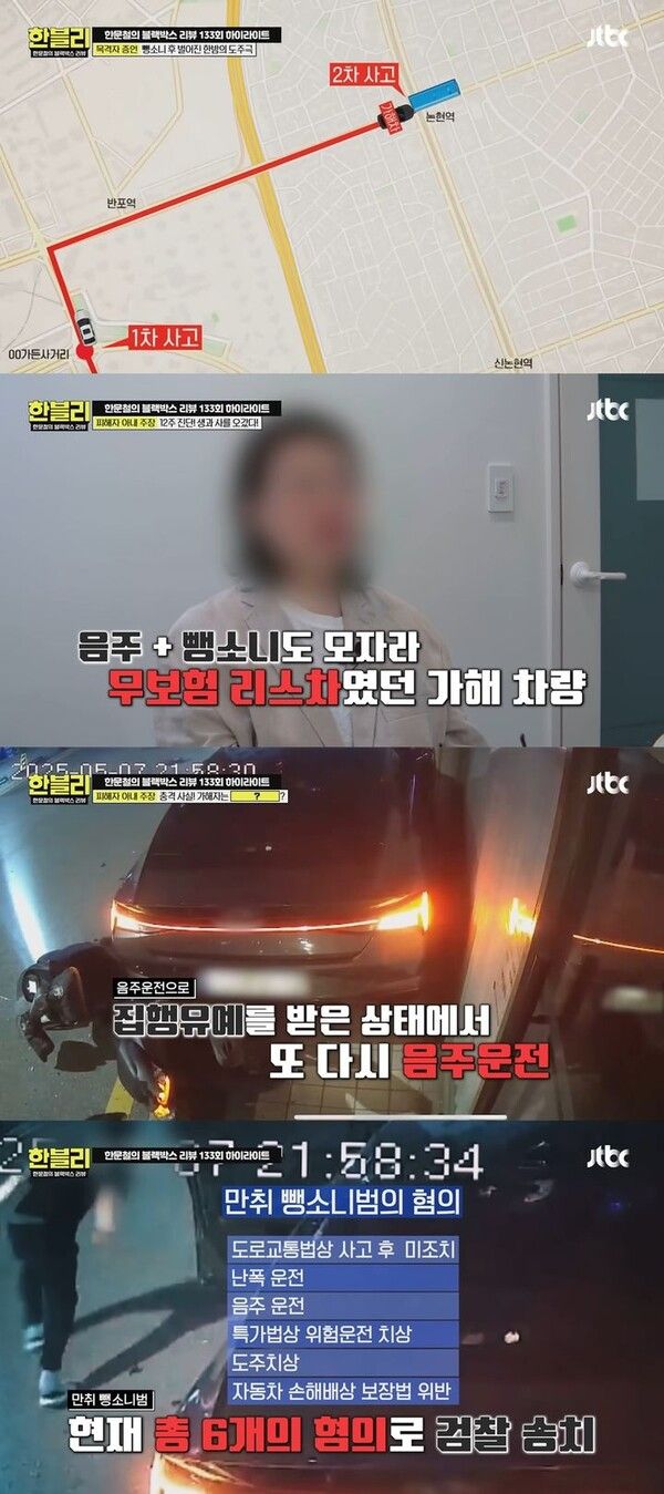 뉴시스 보도에 따르면, JTBC 시사교양 프로그램 '한문철의 블랙박스 리뷰'는 8일 방송에서 음주 사고 CCTV 영상을 단독 입수·공개했다.