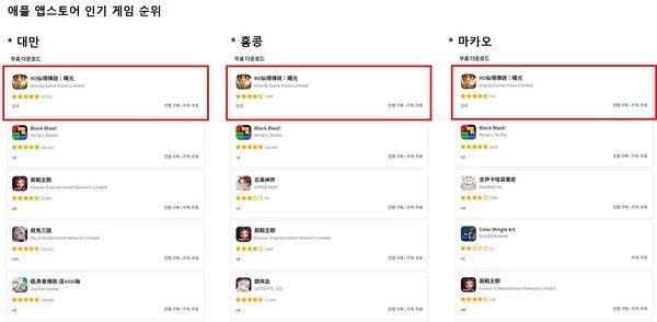 ‘RO선경전설: 서광’은 론칭 전부터 3개 지역 모두 애플 앱스토어 인기 게임 순위 1위에 오르며 현지 유저들의 많은 관심을 받았다. 정식 론칭 후에는 애플 앱스토어 최고 매출 순위 대만 2위, 마카오 6위, 홍콩 8위를 비롯해 구글 플레이 인기 게임 순위 대만 1위, 마카오 3위, 홍콩 6위에 오르는 등 양대 마켓 상위권을 점령했다.