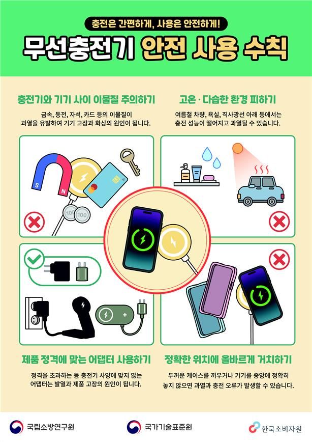 이들 기관은 무선충전기 안전 사용 수칙을 담은 홍보 포스터를 만들어 소비자 단체, 사회관계망서비스(SNS) 등을 통해 배포할 계획이다.
