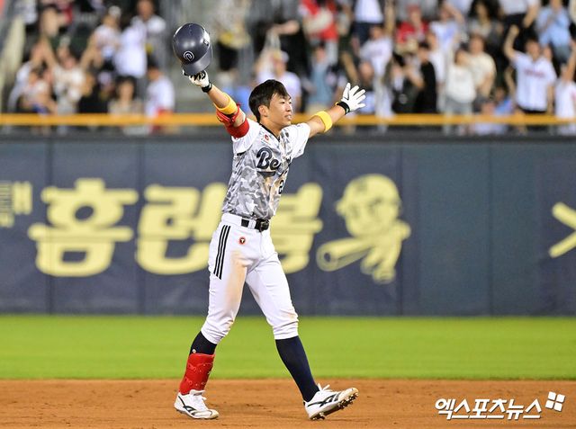 또 "정철원 선배와 대결에 의미를 두는 건 신경 쓸 겨를이 없었다. 적극적으로 승부하는 투수여서 빨리 승부를 내려고 했다"며 "파울이 된 타구가 아쉽다. 1루로 뛰면서 제발 (파울 라인) 안 쪽에 떨어지길 바랐는데 파울이 돼서 아쉬웠다"고 웃으며 말했다.