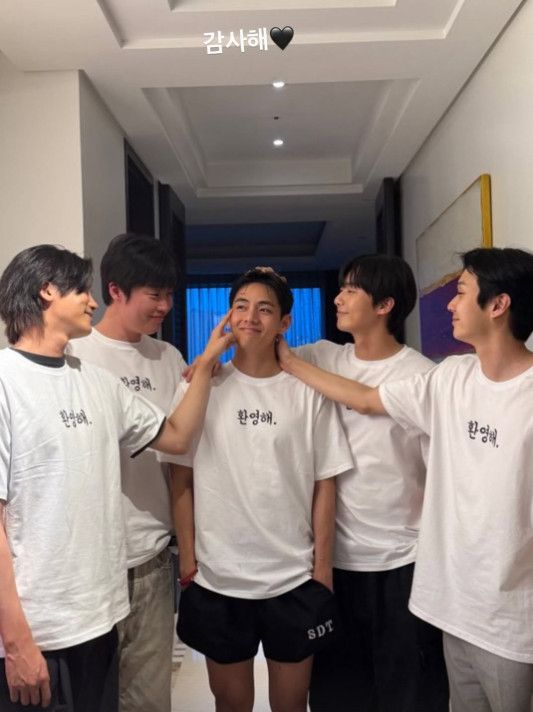 이들은 지난 2023년 12월 "막댕이 잘 다녀와"라며 뷔의 입대 응원에 나선 데 이어 지난달 11일 뷔의 전역 후 완전체로 재회해 이목을 끌었다. 멤버들은 '환영해'라고 적힌 티셔츠를 맞춰 입고 뷔의 전역을 축하했다.