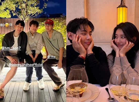 뷔는 지난 8일 개인 SNS에 축구선수 손흥민, 피아니스트 조성진과 함께한 사진 한 장을 게재했다. 뷔가 손흥민 옆 'HBD야"라는 문구를 덧붙인 것으로 보아 손흥민의 생일 기념 모인 자리로 추측된다.