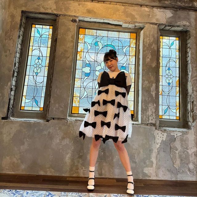 컬러만큼이나 눈길을 끄는 건 패턴 플레이입니다. 이은지는 무난한 패턴도 지루하지 않게 즐기는 법을 잘 알아요. 블랙 앤 화이트 도트 원피스엔 여러 개의 큼지막한 리본을 달아 키치한 매력을 강조했어요. 클래식한 도트 패턴이 입체적인 디테일 덕분에 한층 생기 있어 보이죠?