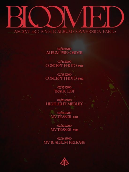 어센트는 지난 8일 공식 SNS를 통해 세 번째 싱글 앨범 'Conversion Part.2 BLOOMED(컨버전 파트.2 블룸드)'의 타임테이블 이미지를 공개했다.
