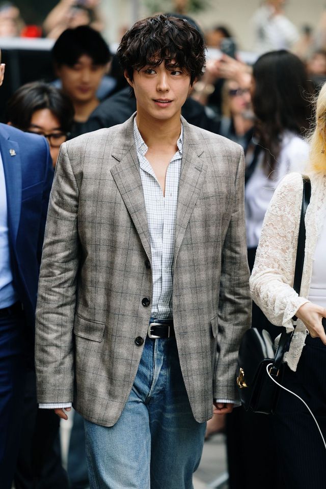 셀린느 쇼 참석으로 파리를 찾은 박보검도 체크무늬를 선택했습니다. 지루한 아저씨 아이템처럼 여겨졌던 클래식한 회색 체크 재킷이 데님 팬츠와 만나니 한결 가볍고 자연스러워졌죠? 셔츠는 무심하게 풀어 입고, 재킷은 힘 빼고 걸친 느낌으로 연출해 체크를 너무 진지하게 입지 않아도 된다는 걸 강조했어요.