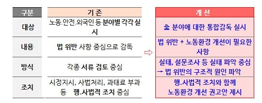 더불어, 건설업의 임금체불과 산업재해의 구조적 원인으로 지속적으로 지적되고 있는 원․하청 간 불공정 관행이나 불법 하도급 여부도 집중적으로 살펴보고 실질적 개선 권고를 위해 관계 부처 간 협업도 강화할 계획이다.