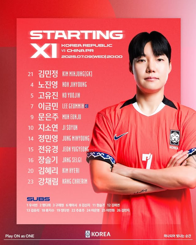 대표팀은 9일 오후 8시 수원월드컵경기장에서 중국과 대회 여자부 1차전을 앞뒀다. 이번 대회는 내년 3월에 열릴 2026호주여자아시안컵을 대비할 수 있는 무대다. 12개국이 출전하는 호주여자아시안컵에서 6위 안에 들면 2027브라질여자월드컵에 출전할 수 있다. 2023호주·뉴질랜드여자월드컵과 2022항저우아시안게임에서 기대이하 성적표를 받아든 대표팀으로선 하루빨리 분위기를 바꿔야 했다.