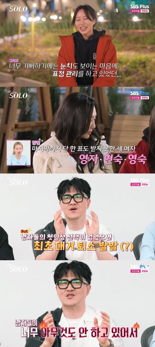 9일 방송된 SBS Plus, ENA의 리얼 데이팅 프로그램 '나는 SOLO'(나는 솔로)에서는 27기 남성 출연자들의 첫인상 선택 결과가 공개됐다.