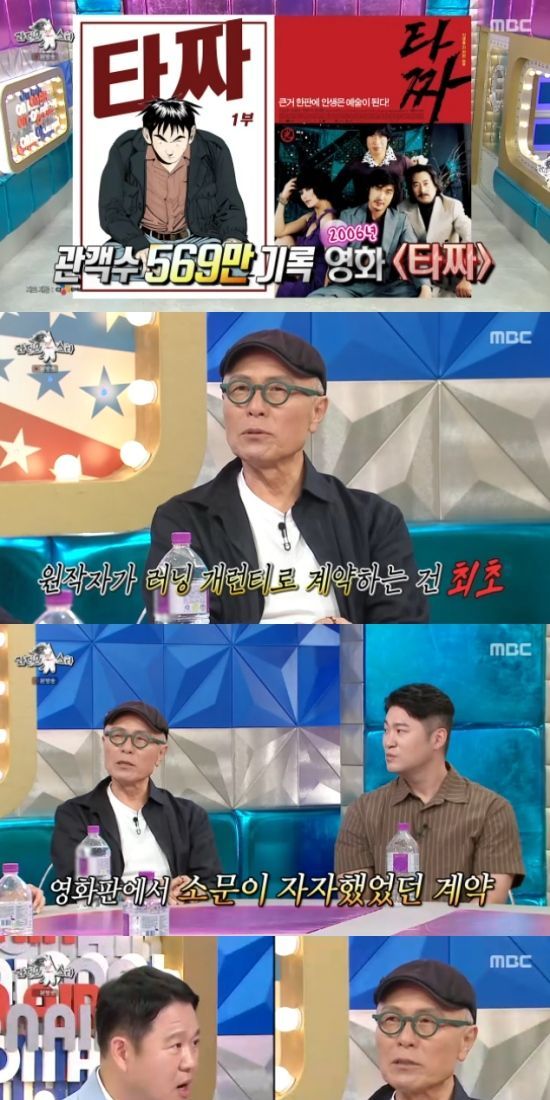 그리고 또 김구라는 허영만의 만화 중 영화화가 된 '타짜'를 언급하면서 "타짜가 관객수가 청소년관람불가인데도 569만명이 들었다"고 했다. 이에 허영만은 "요즘같으면 1000만 넘는 것과 마찬가지"라고 설명했다.