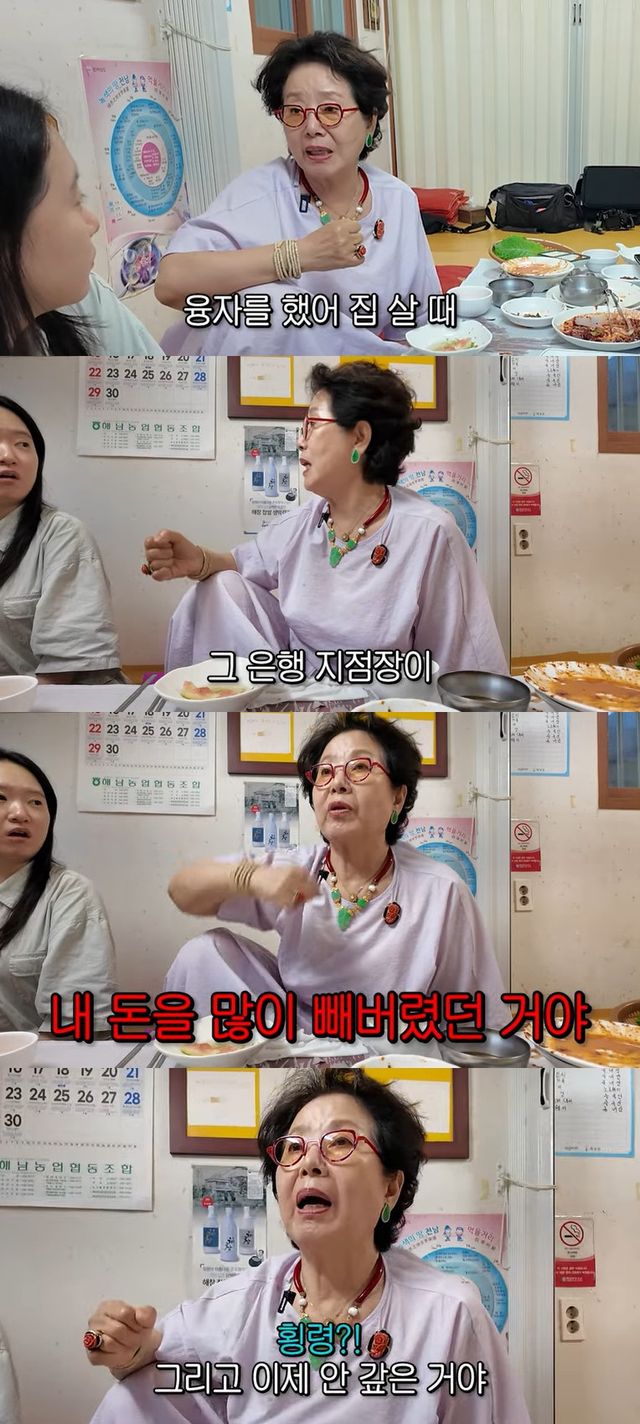 선우용여가 "내가 거기서 융자를 했다. 집 살 때. 그 은행 지점장이 내 돈을 많이 빼버렸던 거다. 그리고 이제 안 갚은 거다"고 하자 깜짝 놀란 제작진은 "횡령이냐"고 물었고, 이에 선우용여는 고개를 끄덕이는 모습을 보였다.