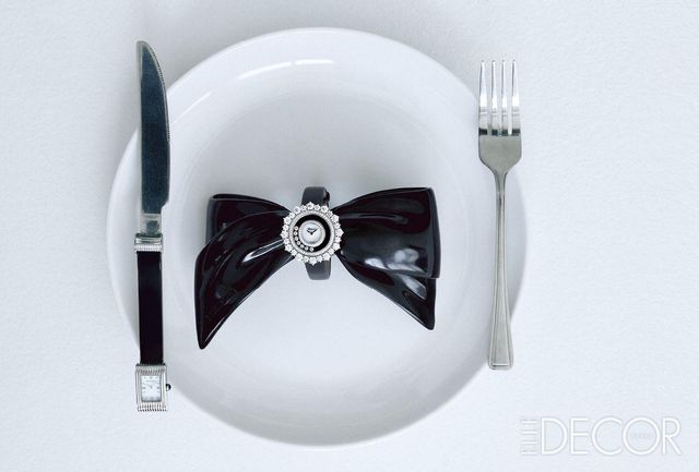 다이얼에 일곱 개의 무빙 다이아몬드가 경쾌하게 움직이는 해피 다이아몬드 워치는 9천9백89만원, Chopard. 나이프 위에 올린 버티컬 스틸 케이스의 스몰 리플레 워치는 5백만원대, Boucheron.헤어 리본 핀은 가격 미정, Balenciaga.