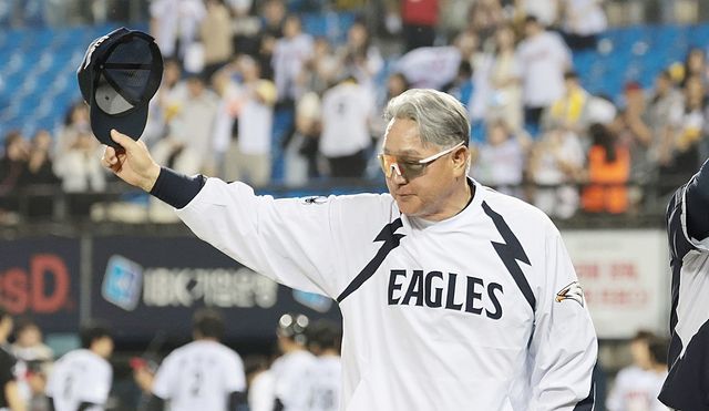 김경문 한화 이글스 감독.리그 1위 한화 이글스가 '디펜딩 챔피언'인 KIA 타이거즈를 꺾고 5연승을 기록했다. / 연합뉴스