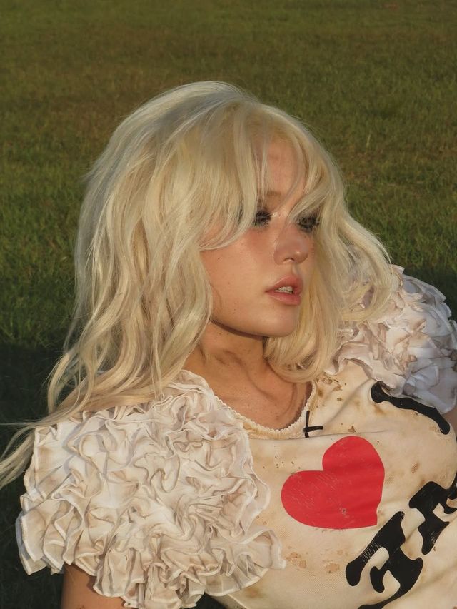 전소미의 착장은 전체적으로 자유분방한 Y2K 감성을 담고 있다. 상의는 크림 컬러의 빈티지 티셔츠로, 다채로운 주름 장식이 어깨 라인을 강조하며 볼륨감을 연출했다. 여기에 과감하게 프린트된 빨간 하트와 블랙 레터링이 시선을 사로잡는다. 살짝 헐렁한 실루엣은 자연스럽고 편안한 분위기를 주며, 더운 계절에 잘 어울리는 여유로운 무드를 강조한다.