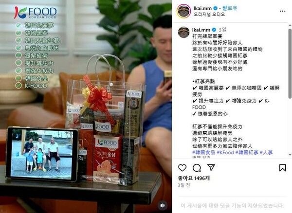 뉴시스 보도에 따르면, 농림축산식품부와 한국농수산식품유통공사(aT)는 대만의 전 메이저리거인 장위청 등과 함께 사회관계망서비스(SNS)를 통한 K-인삼 알리기에 나선다고 10일 밝혔다.