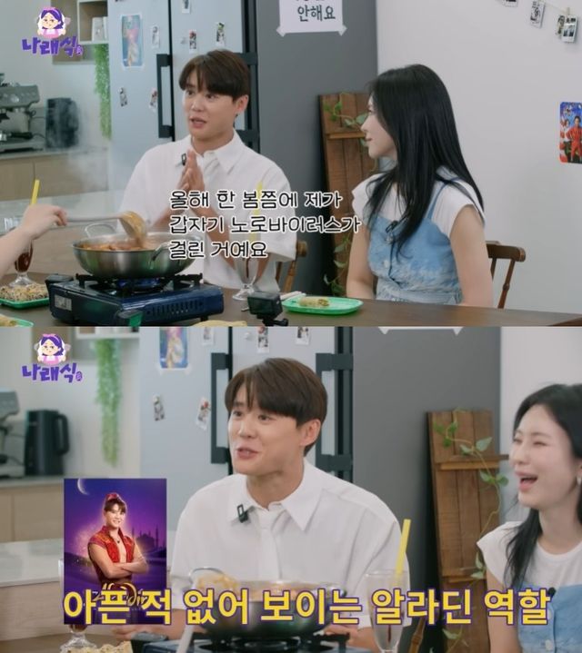 올해 뮤지컬 '알라딘'을 소화한 김준수는 지난 9일 유튜브 채널 '나래식'에 출연, 노로 바이러스 투병 사실을 뒤늦게 고백했다.