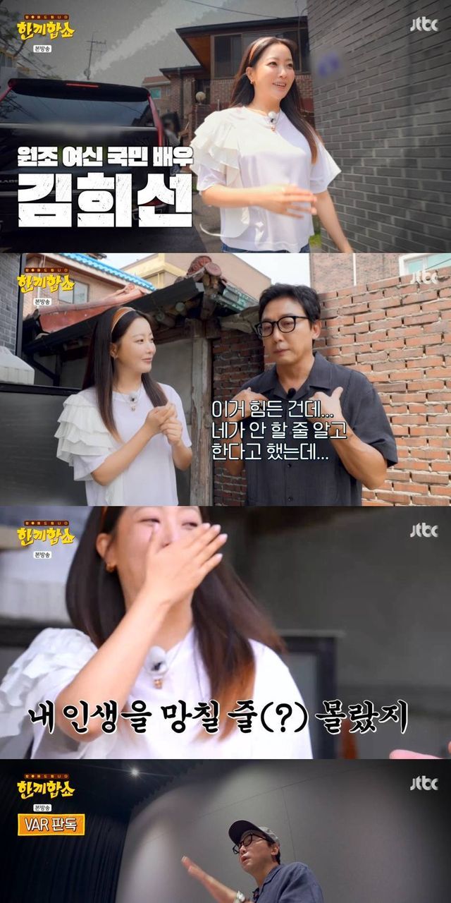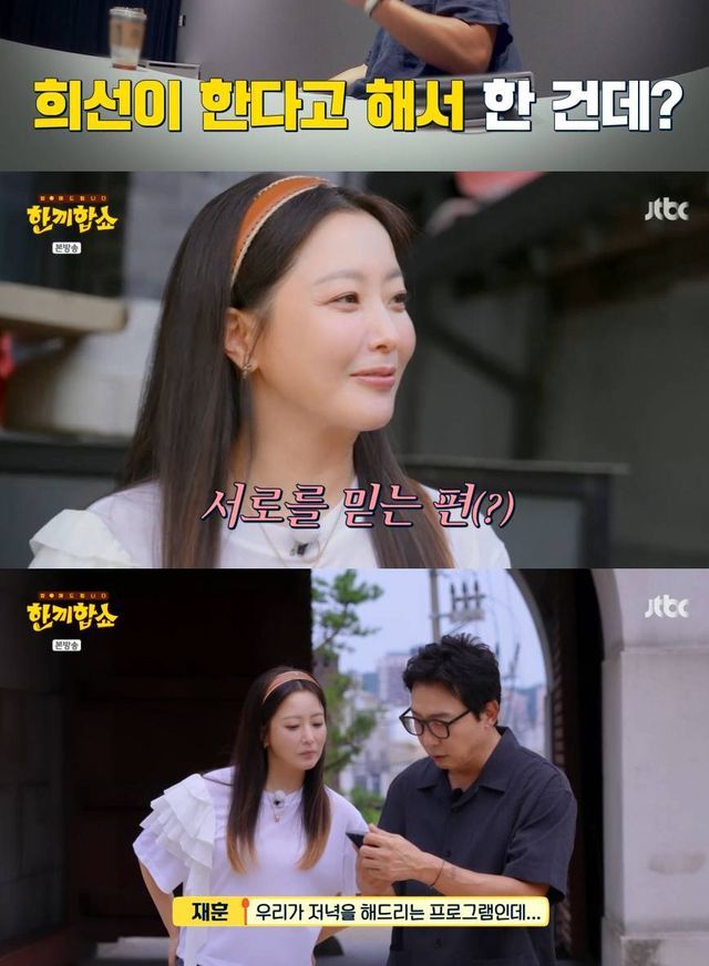 김희선은 MC로 함께하는 탁재훈에게 "오빠, 미안한데 이런 힘든거 왜한다고 했냐"라고 물었다.