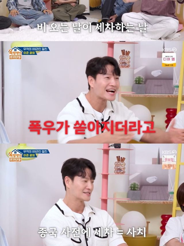 이어 양세찬은 "세차를 몇 번 하냐"고 물었고, 이준이 "세차를 안 한다"고 하자 만족한 김종국은 "나도 안 한다"면서 "어차피 더러워질 거 뭐 하러 하냐"고 덧붙였다.