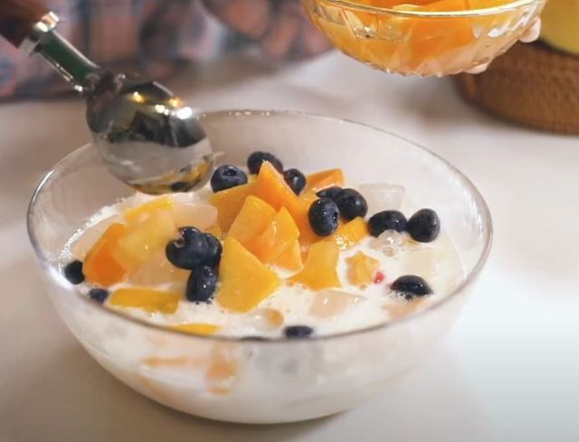 더 고급스러운 풍미를 원한다면 민트잎이나 레몬즙을 몇 방울 더해도 좋다. 음료로 마시고 싶다면 탄산수 대신 우유를 넣어 부드러운 ‘복숭아 밀크화채’로 즐길 수도 있다.