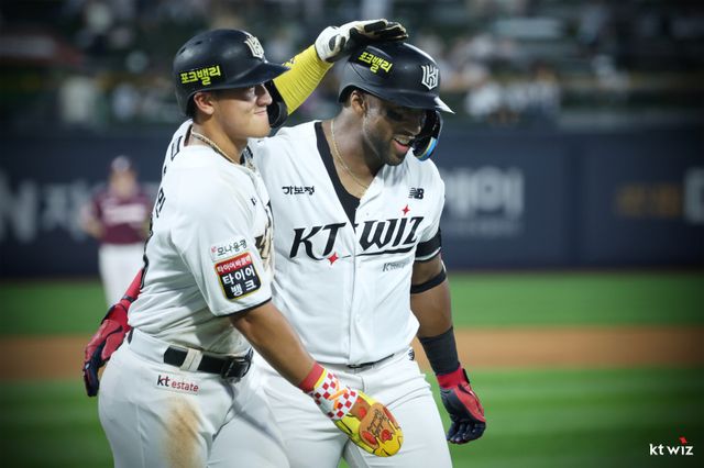 두 선수가 더 가까워진 건, 지난 4월말 안현민이 1군 주전으로 도약했을 때부터다. 4월 30일 1군 주전 선수가 된 그는 7월까지 60경기에 나서 타율 0.356(216타수 77안타) 맹타를 휘두르며 팀의 중심 타선에 안착했다. 이 기간 안현민은 16개의 아치를 그려내며 팀 홈런 1위에 올랐다. KT 1군에 없어서는 안될 존재가 된 그는 로하스와 함께 1군에서 생활하면서 더 가까이 지냈다.