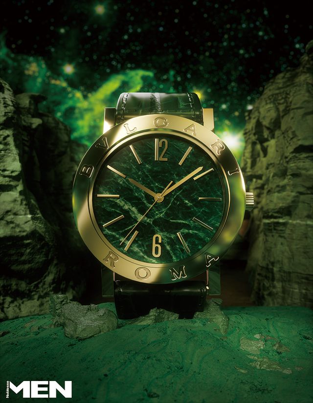 브랜드의 첫 시계라는 상징성, 시간당 진동수 2만8800VpH(4Hz)의 안정적 성능을 보장하는 인하우스 오토매틱 칼리버 BVL 191, 탁월한 주얼리 세공력을 증명하는 베르데 알피 그린 마블 다이얼. 상징과 기술력, 미적 감각의 삼위일체.