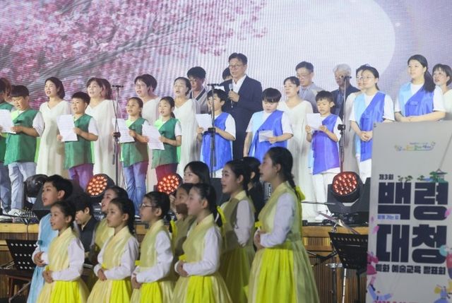 이날 행사는 마을 자치 풍물동아리의 공연으로 시작해, 백령초·북포초 연합 바이올린 앙상블 ‘아리랑’, 5개교(백령초, 북포초, 백령중고, 대청초, 대청중고)의 국악합창, 주민이 함께한 합창 무대가 이어졌다.