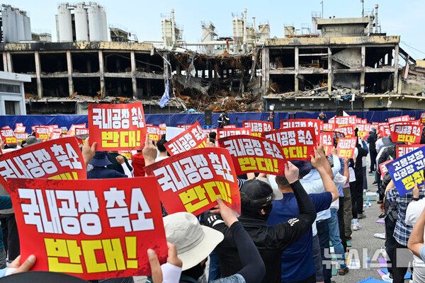 대회에 참여한 조합원들은 화재 이후 공장 재건에 나선 사측이 국내 생산 기반을 희생하는 방식으로 해외 공장 신축을 계획하고 있다고 주장했다.