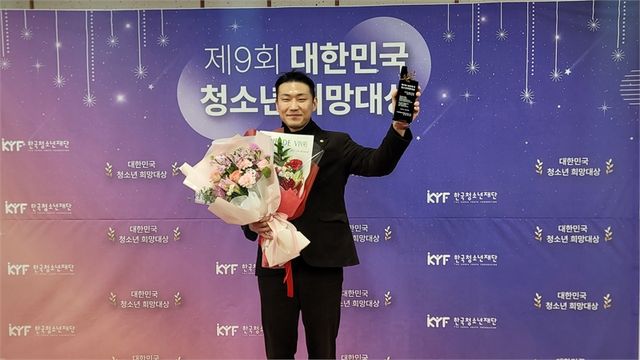 제9회 청소년희망대상에서 수상한 박상현 군포시의원이 기념촬영을 하고 있다.
