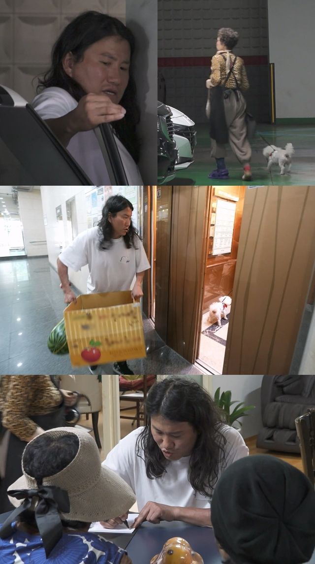 공개된 사진 속에 임우일이 한 손에 수박을 걸고 과일이 가득한 박스를 든 채 닫히는 엘리베이터 앞에서 허둥지둥하는 모습이 담겨 눈길을 모은다. 닫히기 직전인 엘리베이터 안에 반려견 '봉순이'가 타고 있어, 도대체 어떤 상황이 벌어진 것인지 궁금증을 끌어올린다.