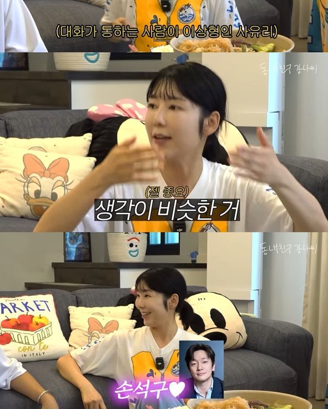이에 강남은 "예를 들면 연예인 누구?"라며 이상형을 물었고 사유리는 "손석구. 손석구 멋있지 않나. 외모(이상형)다"라고 답했다. 이를 들은 강남는 "아까 대화가 잘 되는 사람이라고 하지 않았나"라고 강조해 웃음을 안겼다.