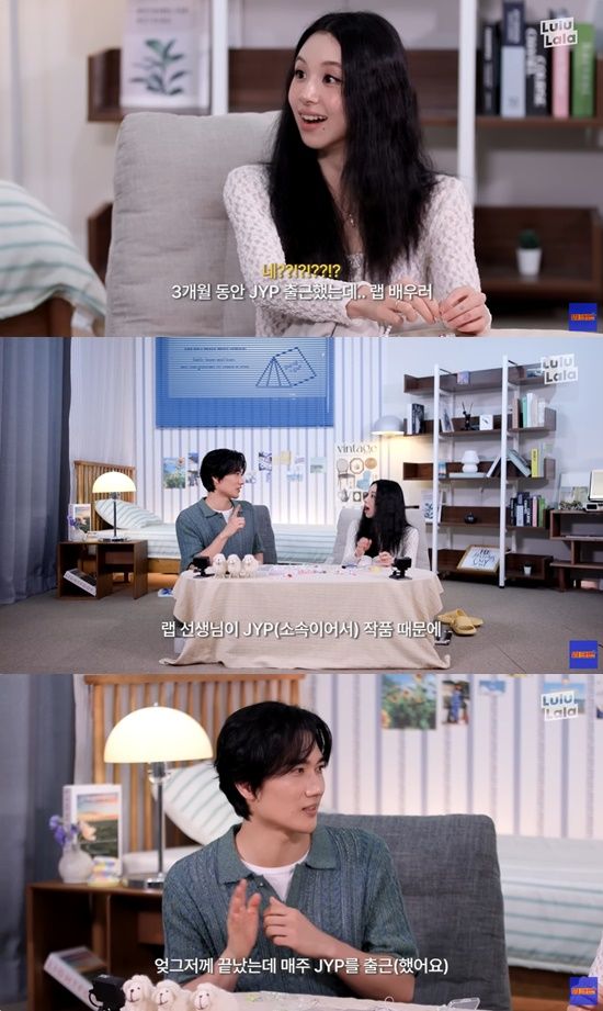 그는 뿌듯하다는 표정을 지으며 "3개월 동안 JYP 출근했는데, 랩 배우러"라며 "랩 선생님이 JYP(소속이어서), 작품 때문에 엊그저께 끝났는데 매주 출근했다. 촬영 없는 날도 계속 JYP (갔다)"고 말했다.