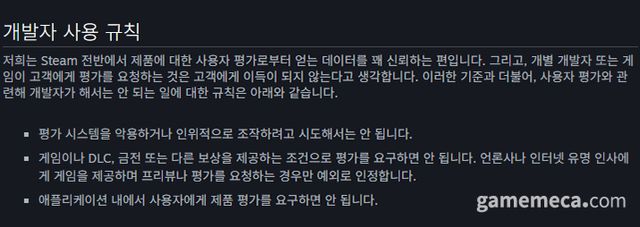 ▲ 스팀웍스 가이드 문서에 안내된 리뷰 정책 (자료출처: 스팀웍스 공식 페이지)