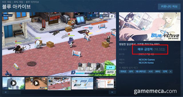 ▲ 7월 11일 블루 아카이브 스팀 버전은 유저 평가 '1만 개'를 넘겼다 (자료출처: 스팀 공식 페이지)