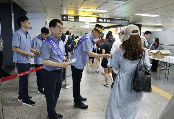 서울교통공사는 11일 홍대입구역에서 공사 직원, 지하철경찰대·마포구청 등과 지하철 역사 내 범죄와 안전사고 예방을 위한 유관 기관 합동 캠페인을 벌였다.