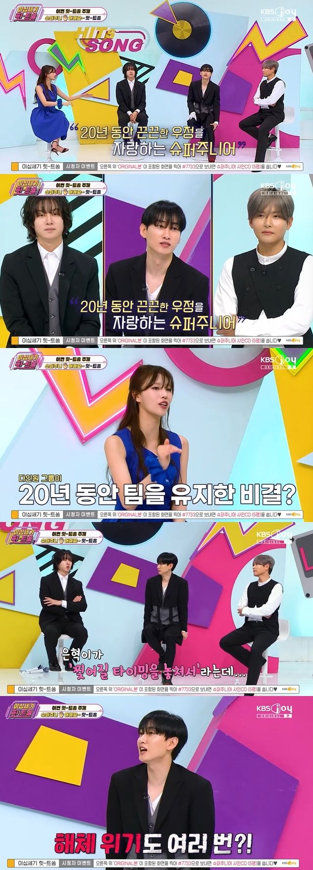 11일 방송된 KBS Joy '이십세기 힛-트쏭' 272회는 20년 동안 꾸준히 사랑받은 원조 K-POP 그룹 슈퍼주니어의 멤버 MC 김희철과 은혁, 려욱이 함께 출연해 진솔한 이야기를 공개했다.