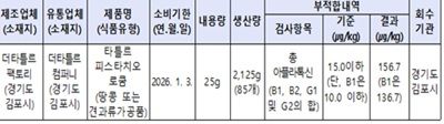 식약처 식품안전정책국은 “김포시청이 해당 제품을 신속히 회수 조치하도록 했다”며, “해당 제품을 구매한 소비자에게 섭취를 중단하고 구입처에 반품해 줄 것”을 당부했다.