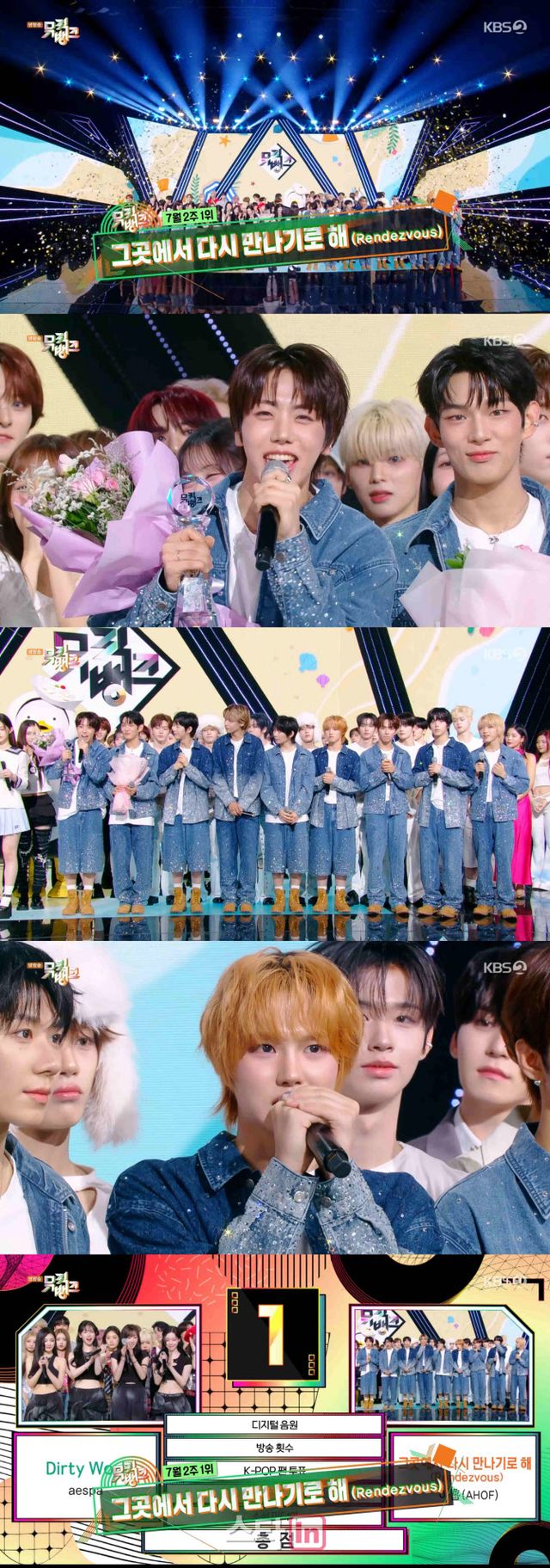 아홉은 11일 방송한 KBS 2TV ‘뮤직뱅크’에서 첫 번째 미니앨범 타이틀곡 ‘그곳에서 다시 만나기로 해’(Rendezvous)로 1위를 차지했다.