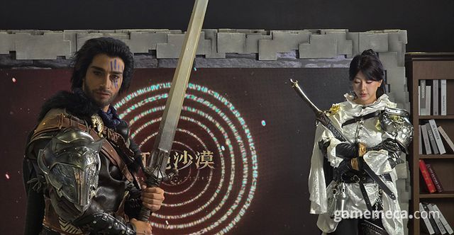 ▲ 주연 캐릭터 '클리프'를 비롯, 게임 내 캐릭터를 코스프레한 모델들이 게이머들을 맞이했다 (사진: 게임메카 촬영)