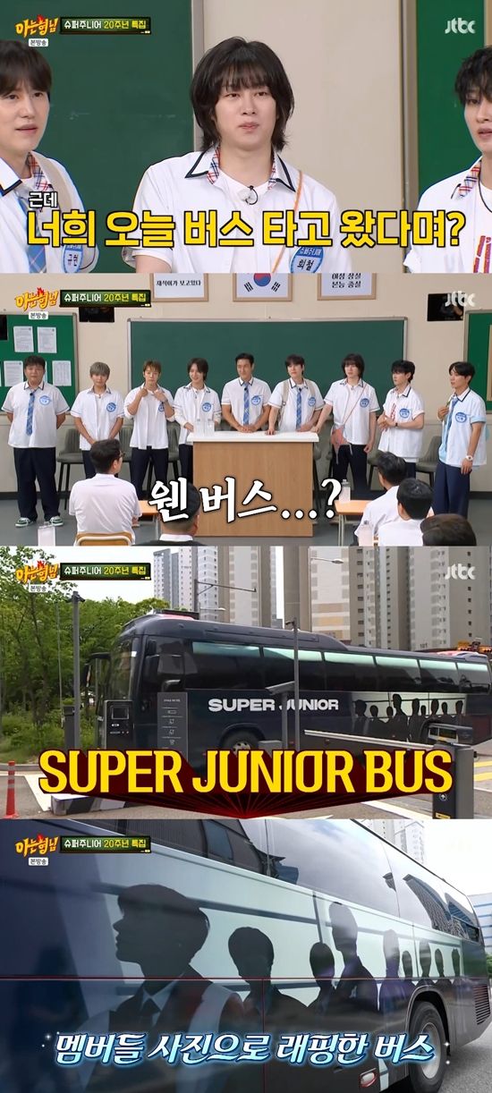 이수근은 슈퍼주니어에게 "너희 오늘 버스를 타고 왔다며?"라고 물었다. 이특은 "왜냐하면 우리가 2005년 데뷔할 때 홍보를 하려고 래핑 버스를 타고 스케줄을 다녔다"라며 버스를 타고 온 이유를 공개했다. 신동은 "희철이가 타자고 했다"라고 말했다.